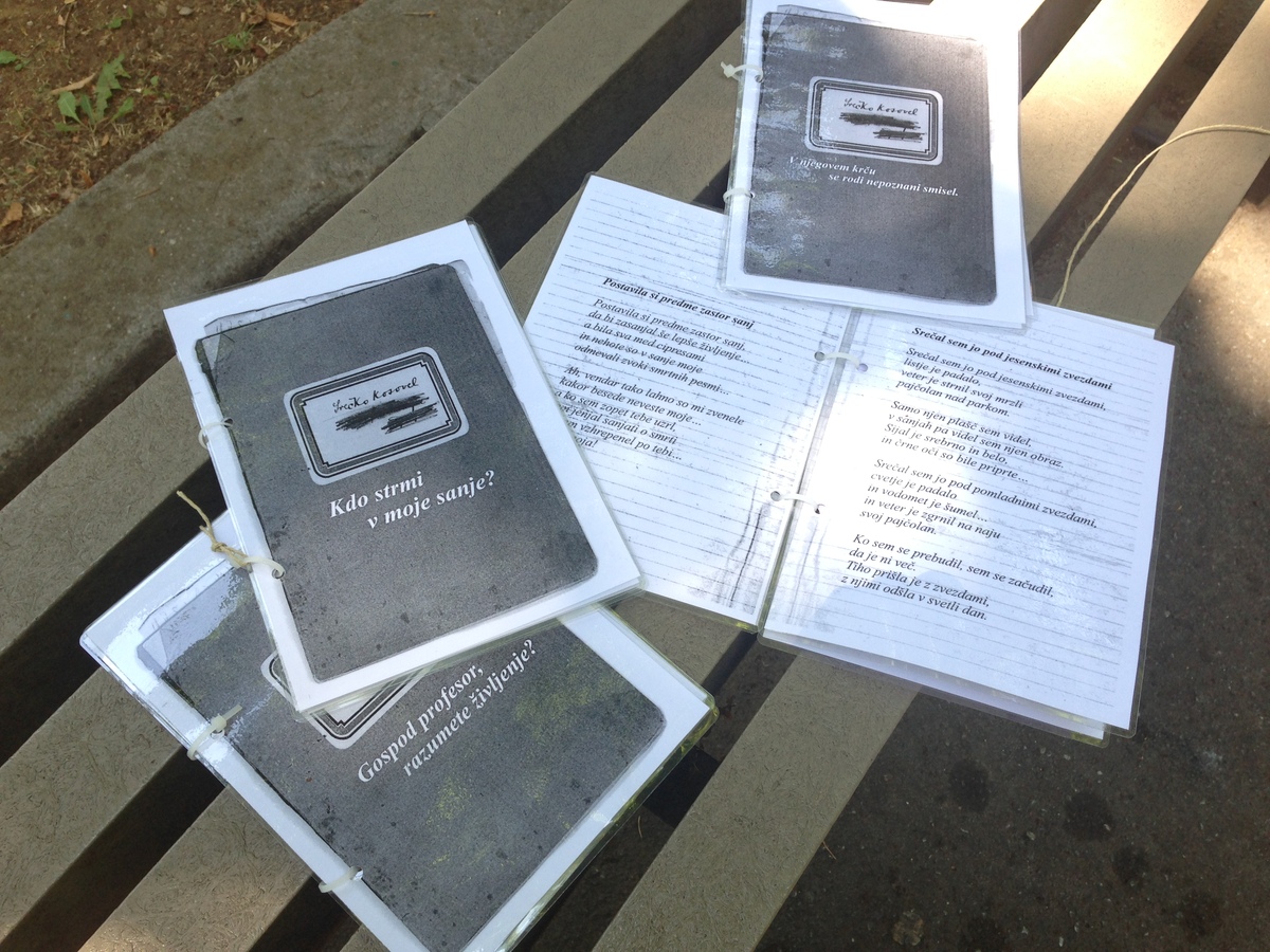 V okviru akcije bodo pripravljeni plastificirani zvezki z izborom Kosovelove poezije in drugih zapisov, ki bodo nameščeni na javnih površinah v mestu Sežana, predvsem na klopeh. Ob zvezkih bo na posameznih lokacijah postavljena tudi knjiga izbranih pesmi in misli Srečka Kosovela, ki jo je društvo izdalo leta 2019. Zvezki in knjige bodo na klopi pritrjeni z vrvico z jasnim sporočilom, da so namenjeni branju na mestu postavitve in ne odnašanju.