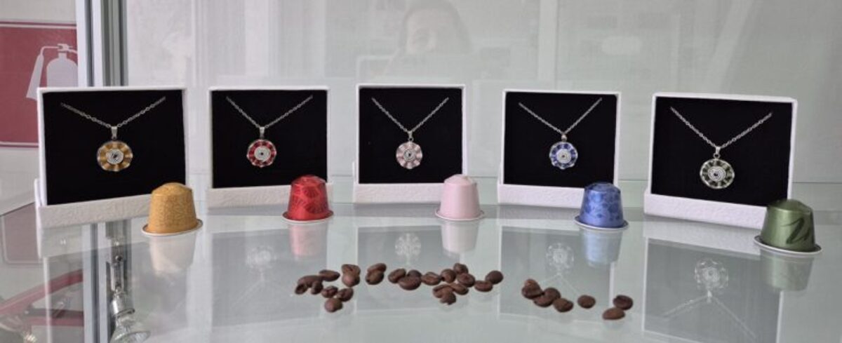 Razstava predstavlja trajnostno ustvarjanje skozi unikatne, ročno izdelane umetniške in uporabne izdelke iz uporabljenih kavnih kapsul.