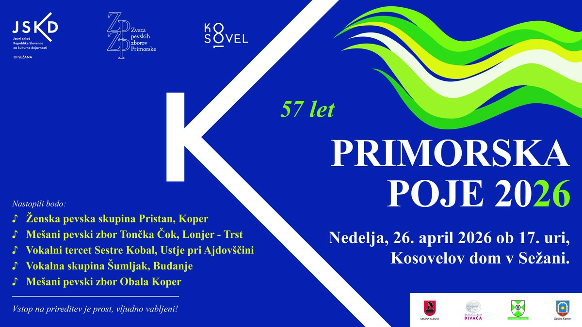 57. zborovska revija Primorska poje bo med 27. februarjem in 26. aprilom 2026 ponovno zazvenela v pesmi pomladi ter prvič povezala pevce iz primorskih krajev doma in v zamejstvu z lastno skladbo Primorska poje, ki predstavlja pomemben mejnik v zgodovini revije. Skupna pesem bo povezala energijo primorskih pevk in pevcev s slovensko pesniško in glasbeno dediščino.