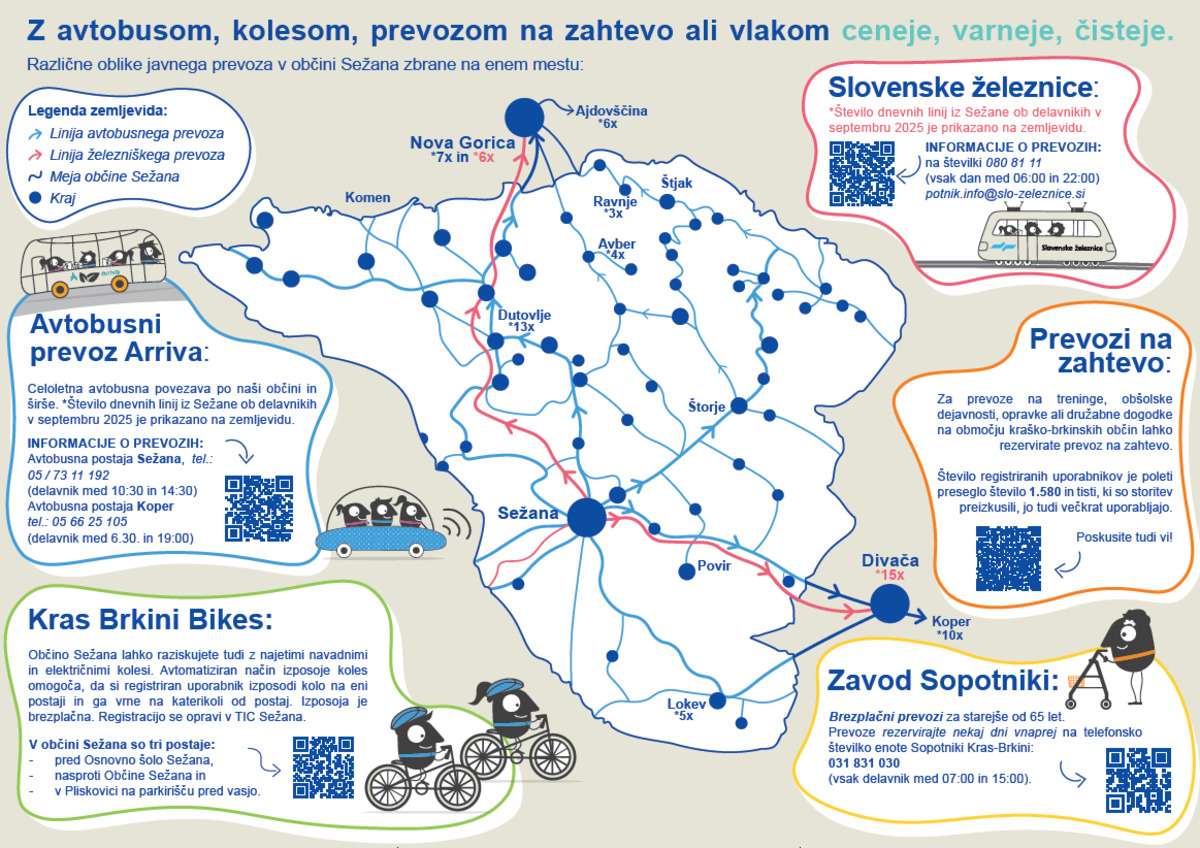 Da bi olajšali načrtovanje poti, smo na enem mestu zbrali vse ključne informacije o možnostih javnega prevoza v občini Sežana.