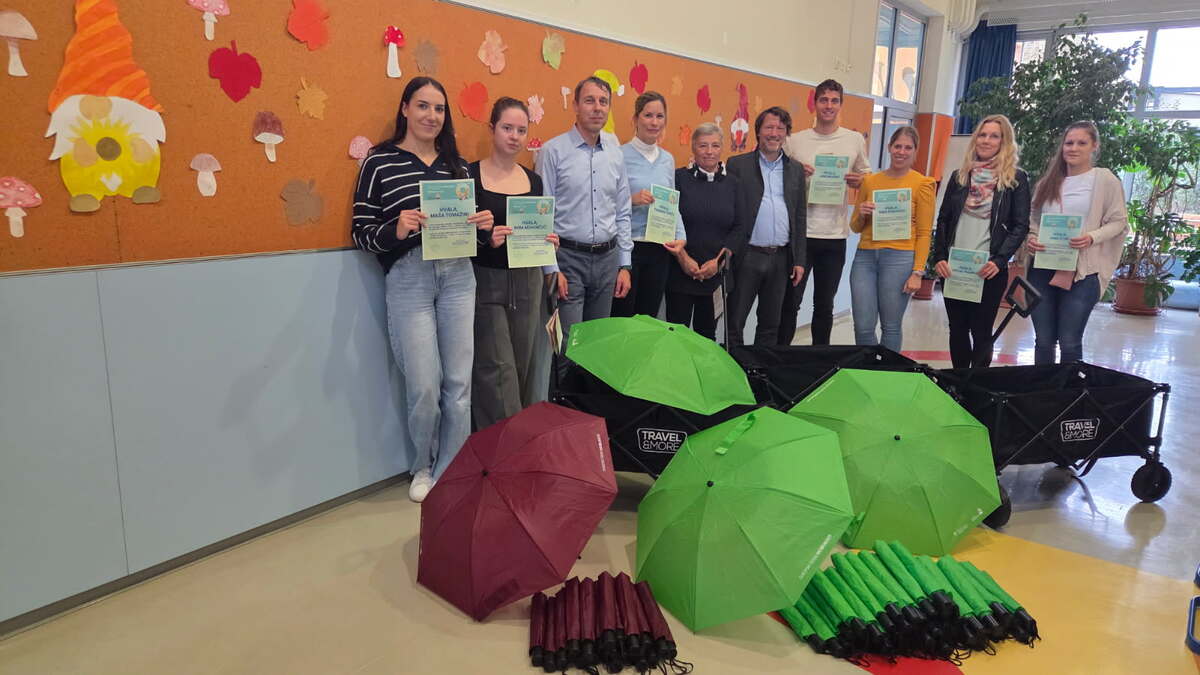 Da bi Pešbus postal stalna praksa in se razširil tudi na pomladanske mesece, so bili udeleženci simbolično nagrajeni. Prejeli so dežnike Evropskega tedna mobilnosti, ki jih bodo lahko uporabljali tudi v deževnih dneh, ter tri vozičke za šolske torbe, ki bodo z zmanjšanjem bremena olajšali vsakodnevno pot v šolo. Učenci in sodelujoči učitelji so nagrade prejeli v torek, 21. oktobra 2025.