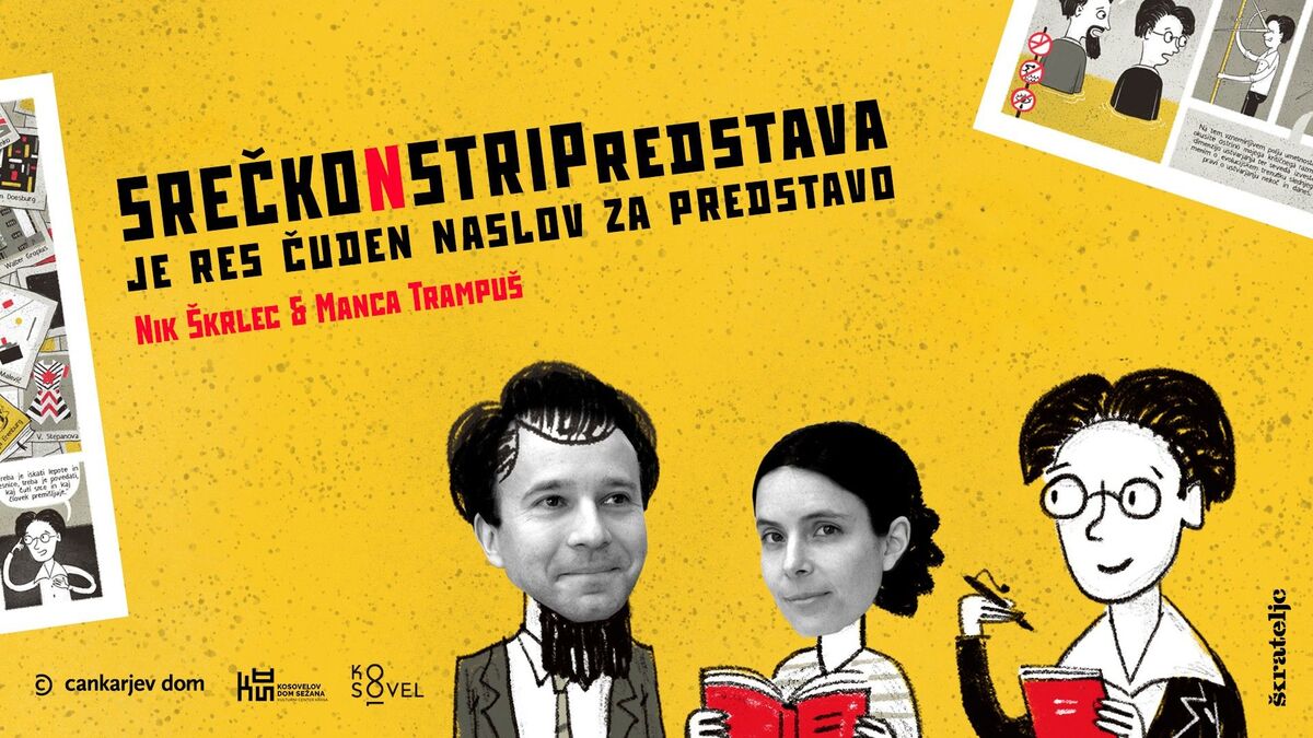Po motivih stripa SREČKONSTRIP (Škrateljc, 2025) avtorjev Žige X Gombača in Jake Vukotiča je v sklopu Kosovelovega leta 2026 nastala uprizoritev SREČKONSTRIPredstava je res čuden naslov za predstavo, ki Kosovela uporabi kot izhodišče za interaktivni gledališki dogodek. Skozi preigravanje forme intervjuja, podkasta, dialoga in pripovedovanja nastopajoča postopoma opuščata fiksno strukturo ter vabita občinstvo v soustvarjanje vsebin, tem in celo naslova predstave. Meja med Kosovelom, Manco in Nikom, med odrom in avditorijem ter med realnostjo in domišljijo se zabriše, v ospredje pa stopi skupnost gledalcev kot ustvarjalni subjekt.