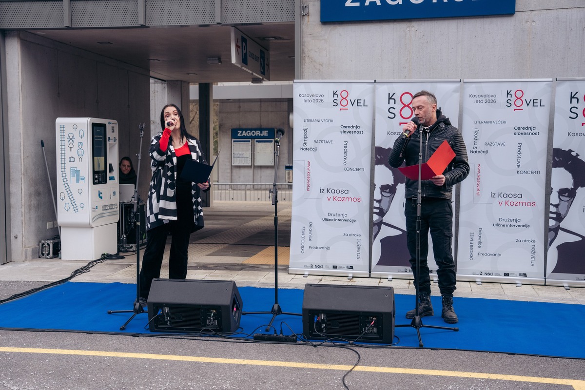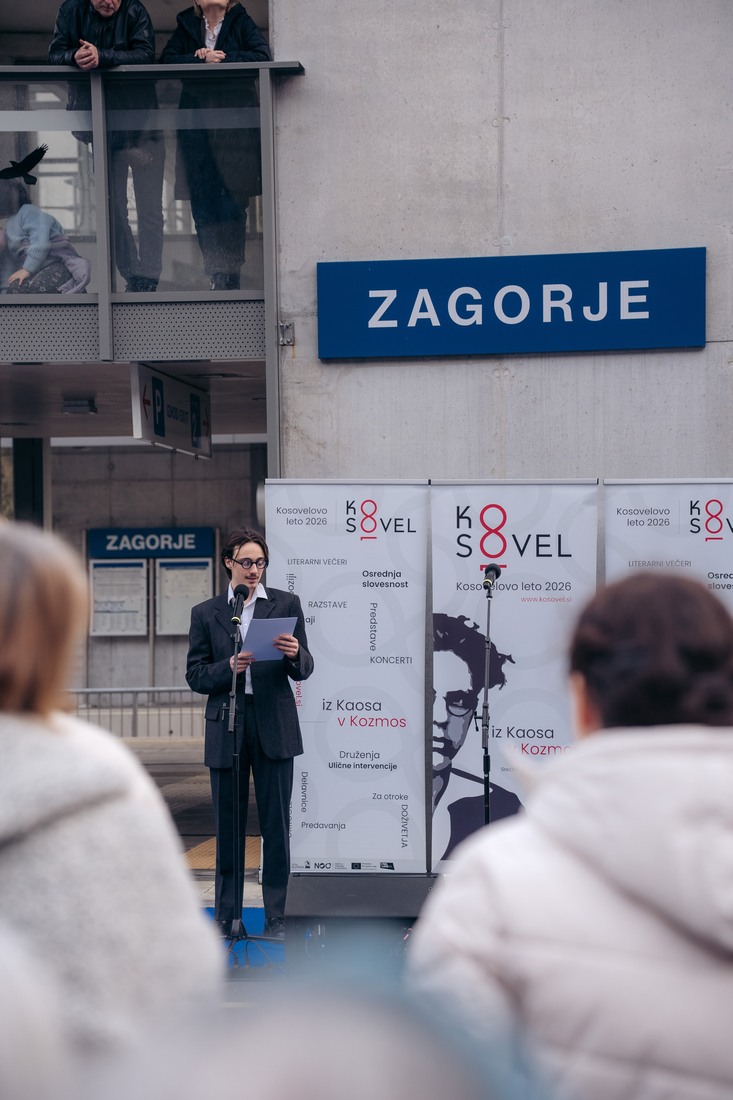 Kosovelove delavnice na Vlaku do ZagorjaPot iz Sežane do Zagorja je skupini nekaj več kot 50 oseb, ki so jo sestavljali obiskovalci in zaposleni v Občinski upravi Občine Sežana, ponudila nekoliko drugačno, trajnostno obliko potovanja, obogateno s spoznavanjem pesnika s Krasa in Kosovelovega leta 2026. Delavnice na vlaku so povabile v svet Kosovelove poezije, k razmisleku o pesnikovi vlogi v sodobnosti in skupni prihodnosti. Pomešani v skupine so potovalci iz razrezanih verzov sestavljali Kosovelove pesmi, pisali manifeste in naslove iz časopisnih prispevkov preobrazili v Kosovelove lepljenke.