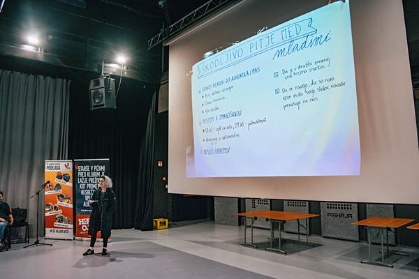 Zbrane, predvsem mlade iz ŠC Srečka Kosovela Sežana, so nagovorili strokovnjaki iz področja alkohola in prometa. Predstavnica Nacionalnega inštituta za javno zdravje, dr. Maja Roškar, je mladim predstavila dejstvo, da varnega pitja alkohola ni, je zgolj bolj ali manj tvegano. Poudarila je, da alkohol škoduje razvoju možganov, ki se razvijajo do 25. leta, zaradi česar je pitje alkohola med mladimi iz čisto biološkega vidika še posebej problematično. Ga. Vesna Marinko, v.d. direktorice Javne agencije RS za varnost prometa je opozorila na to, da imajo mladi vozniki manj izkušenj, več so na cestah ob vikendih, večja je potreba po dokazovanju in upiranju družbenim normam, zato so tudi najbolj ranljivi udeleženci v cestnem prometu. G. Robert Kralj iz Policijske postaje Sežana se je s statistiko osredotočil na omenjeno in okoliške občine, kjer je izpostavil, da se je število prometnih nesreč z udeležbo mladih v zadnjih letih precej zmanjšalo. Ob tem je opozoril, da ne glede na vse, »po res majhnih številkah udeleženih otrok v prometnih nesrečah, ta številka zelo poskoči prav v starosti od 18 do 24 let, ko postanejo mladi samostojni udeleženci prometa«. Nadalje je zbrane nagovoril poveljnik Zavoda za gasilsko in reševalno službo Sežana, g. Blaž Turk. S prikazom videa hude prometne nesreče leta 2016 na avtocesti pri Razdrtem je opozoril na pomen pravilne varnostne razdalje ter prilagajanja hitrosti voznim razmeram. Vodja mladinskih programov v Mladinskem centru Podlaga, ga. Urška Milač pa je zaključila z izsledki fokusnih skupin z mladimi, ki so jih opravili nekaj tednov pred posveti, kar je predstavljalo dobro iztočnico za delavnice, ki so sledile.