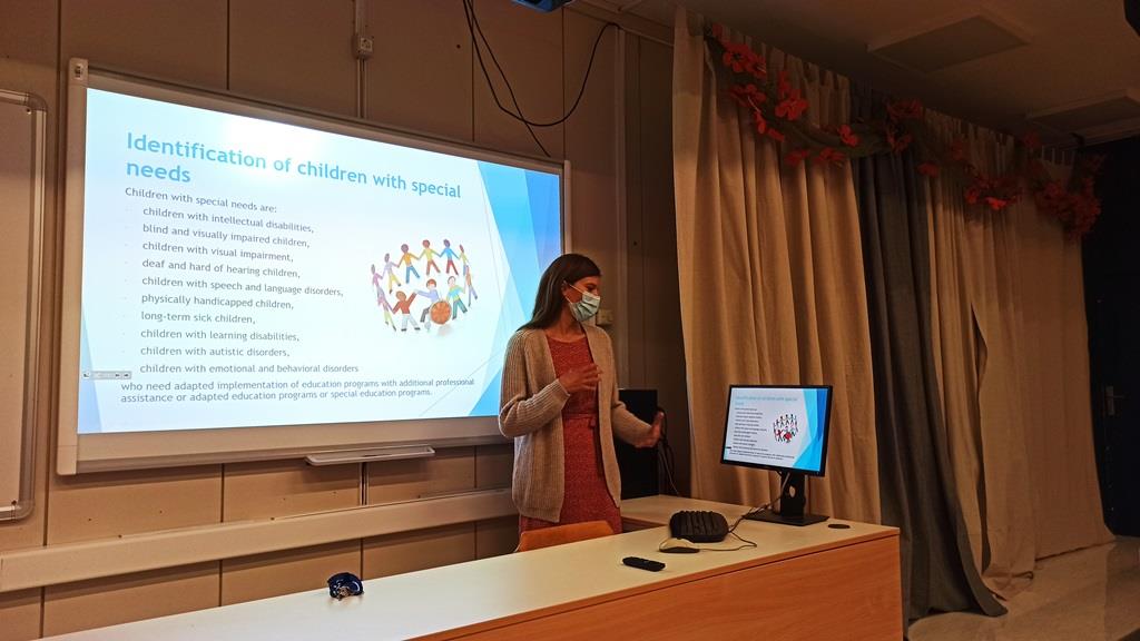 Drugi dan obiska je sledila seznanitev z načini vključevanja dijakov s posebnimi potrebami v šolsko delo, dejavnostmi in projekti Šolskega centra Srečka Kosovela, ogled razstave z naslovom »To sem jaz«, ki so jo pripravili dijaki pod mentorstvom profesorjev. Udeleženke projekta so pri spremljanju pouka spoznale tudi primere uporabe umetnosti kot metode za spodbujanje razvojnih sposobnosti dijakov. Obisk sežanskega šolskega centra se je zaključil s sprejemom na Višji strokovni šoli. Popoldne so partnerji v veliki sejni dvorani Občine Sežana predstavili projekt in svoje organizacije lokalnim deležnikom, članom Odbora za zdravstvo in socialno varstvo, Odbora za kulturo, šolstvo in šport, Komisije za mladinska vprašanja in zaposlenim v občinski upravi.