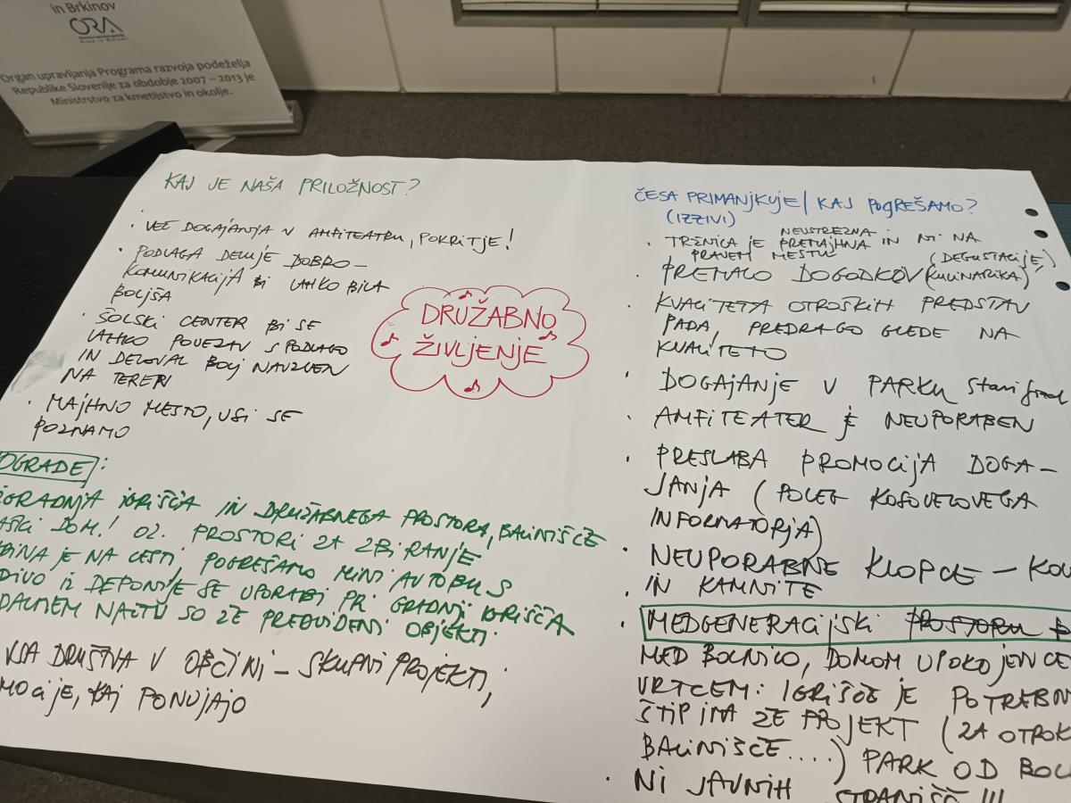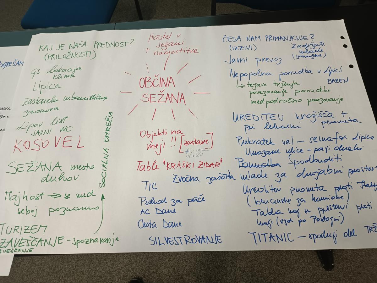 Delavnico v Sežani smo usmerili tudi v pridobivanje mnenja prebivalcev glede družabnega življenja, ki si ga želijo. Udeleženci so nanizali naslednje možnosti za njegovo poživitev: