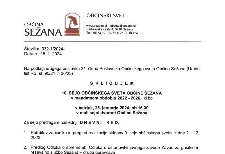 10. redna seja občinskega sveta v mandatnem obdobju 2022-2026